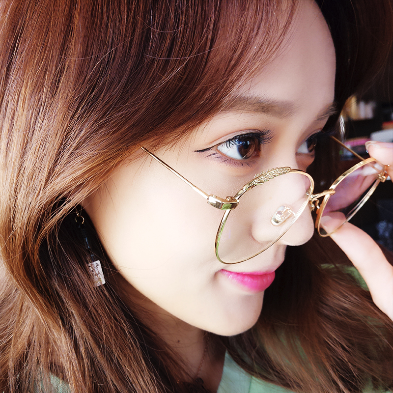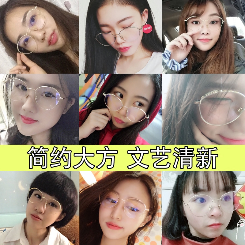 Retro Wheat Ears Trim Round Frame Radiation Protection Goggles Big Face Women Tide Nearsightedness Glasses Men's Flat Mirror Pearl Frames