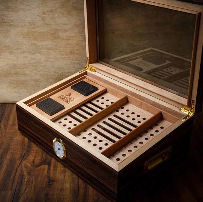 LUBINSKI Imports Spanish chamberwood Wooden Piano Baking Varnish Transparent Visible Cigar Case Moisturizing Box