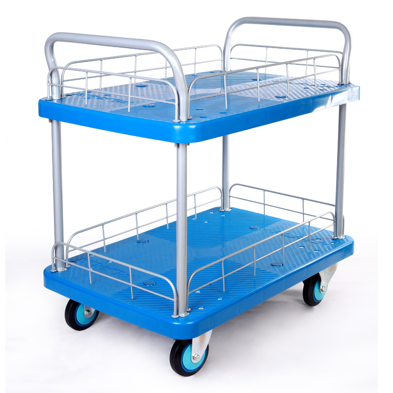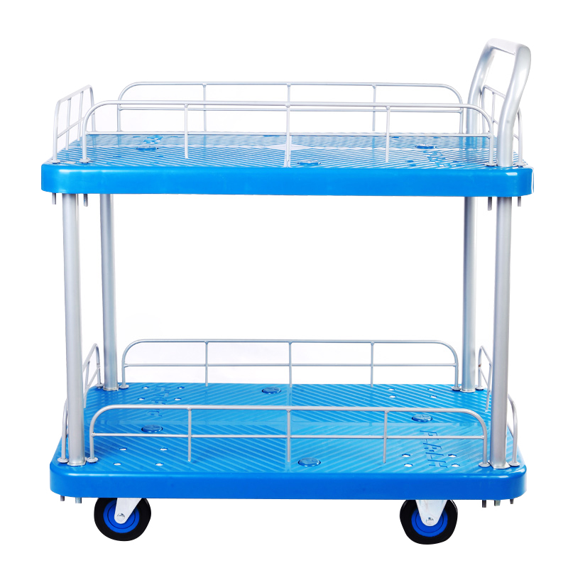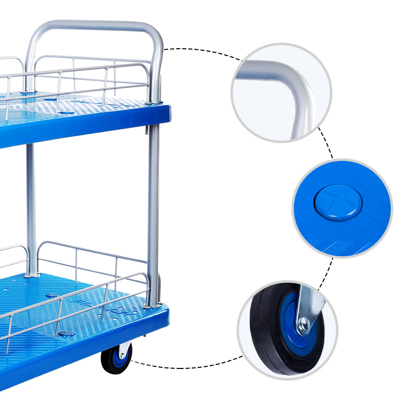 Double-layer flat plate full mute plus guardrail trolley Flat car storage truck handling tool truck four-wheeled truck