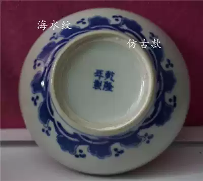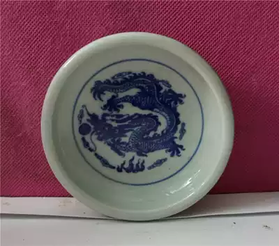 1980s blue and white flying dragon medium pen wash caliber 11 8 height 3 cm double-sided decal antique style