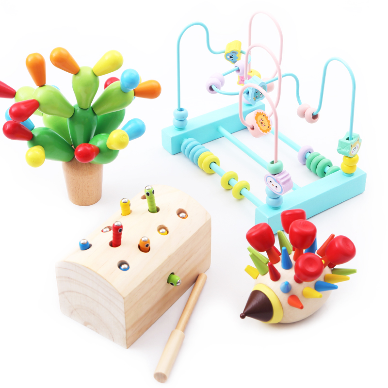 Variety plugging cactus, bee clipping, colorful hedgehog puzzle, macarons around beads, puzzle catching insect game, socket cylinder