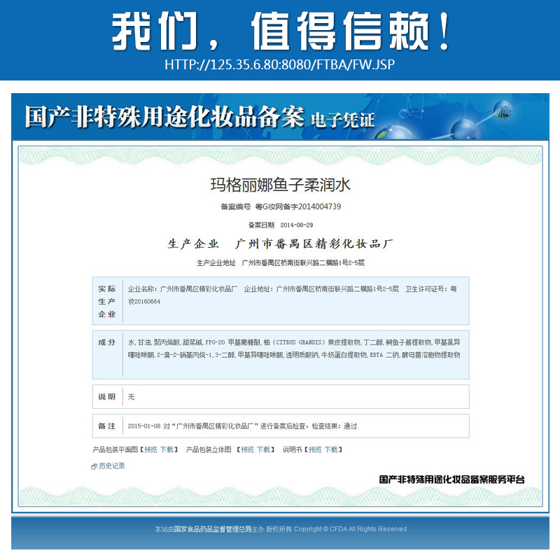 The registration certificate number of the cosmetic filing number: