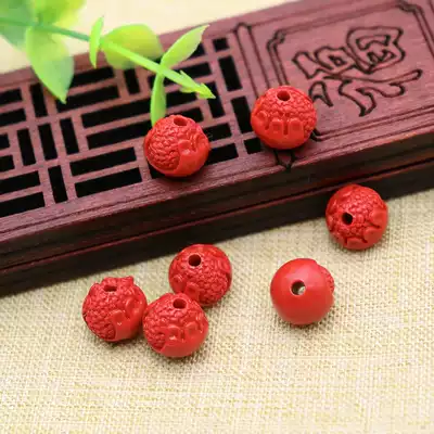 Cinnabar loose beads Raw ore hanging jewelry Handmade baby children diy accessories Round ganoderma lucidum Ruyi pattern beads