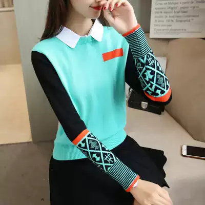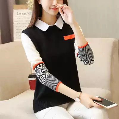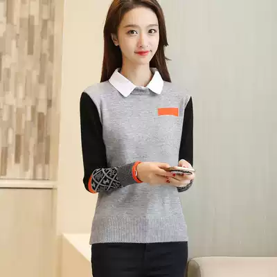 Spring dress 2021 new fake two-piece coat ladies sweater long sleeve loose Korean base sweater coat autumn
