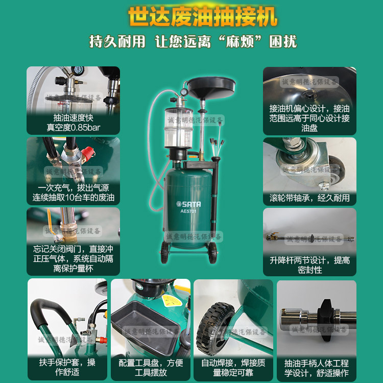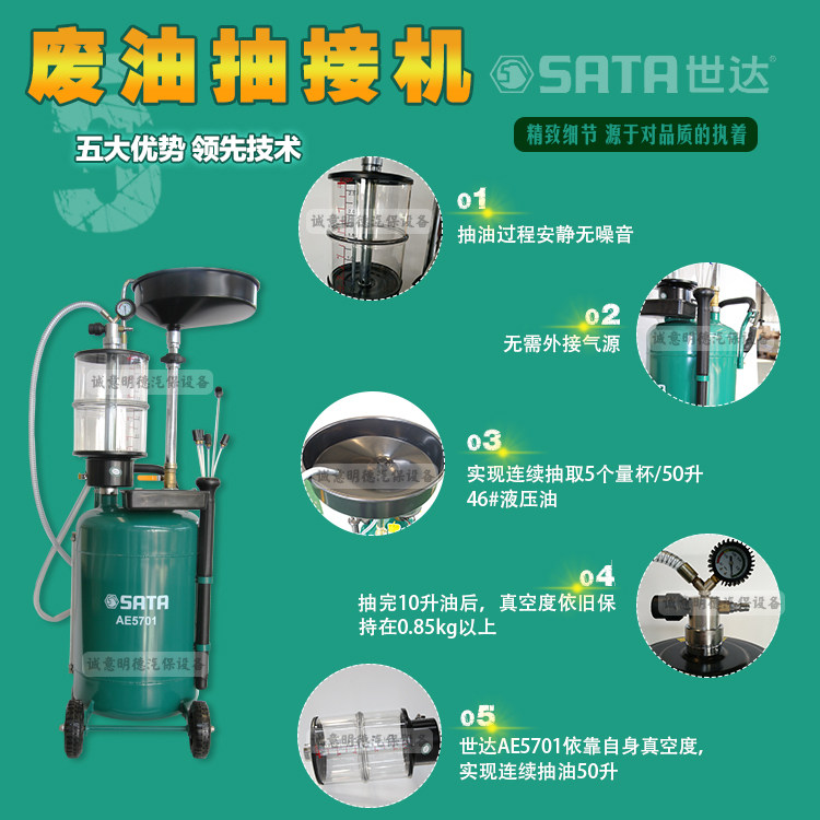 Shida AE5701 pneumatic pumping oil machine Auto repair waste oil recovery bucket Manual vacuum oil change collector