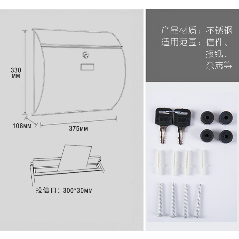 Letter box European villa outdoor wall-mounted rainproof suggestion box with lock mailbox 304 stainless steel thickened letter box