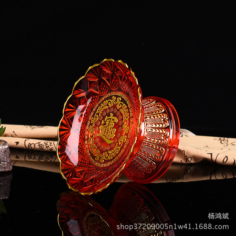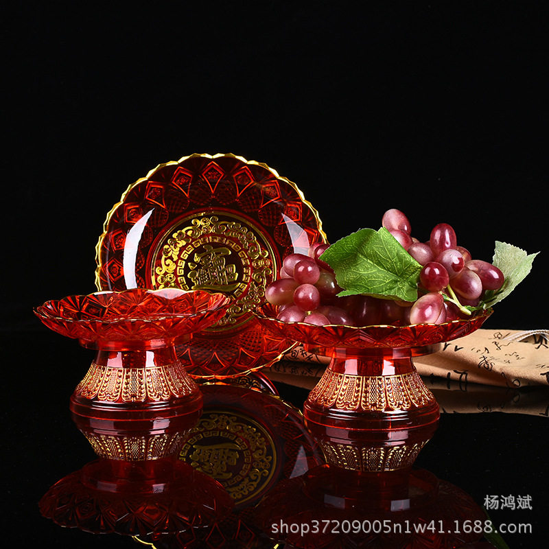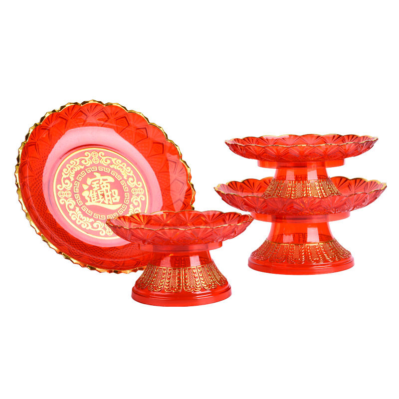 Lucky treasure Red plastic crystal fruit plate God of Wealth Guanyin tribute plate Lotus offering plate Household fruit plate Wedding candy
