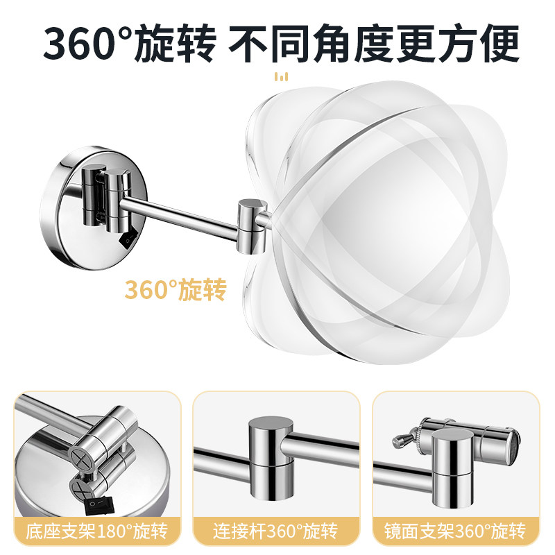 Hotel bathroom toilet led with lamp wall mirror makeup mirror wall-mounted folding telescopic magnifying beauty mirror-Taobao