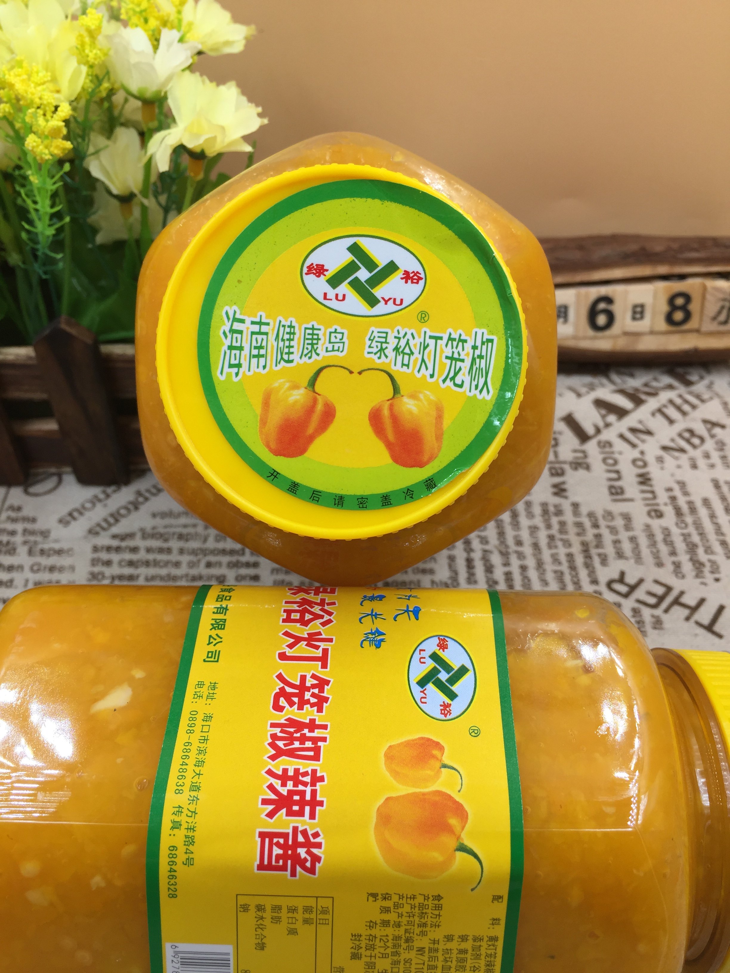 Green Yu Sweet Pepper Hot Sauce 850g Large Barrel Bottling Hainan Special Spicy Yellow Lantern Chili Sauce Chopped Peppers head