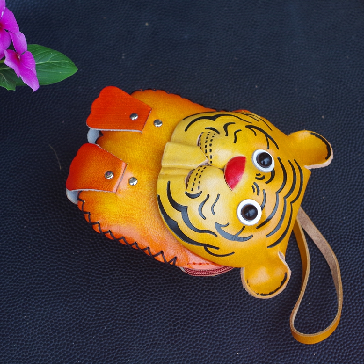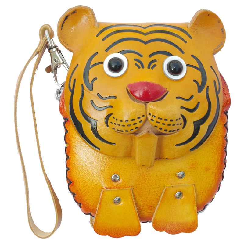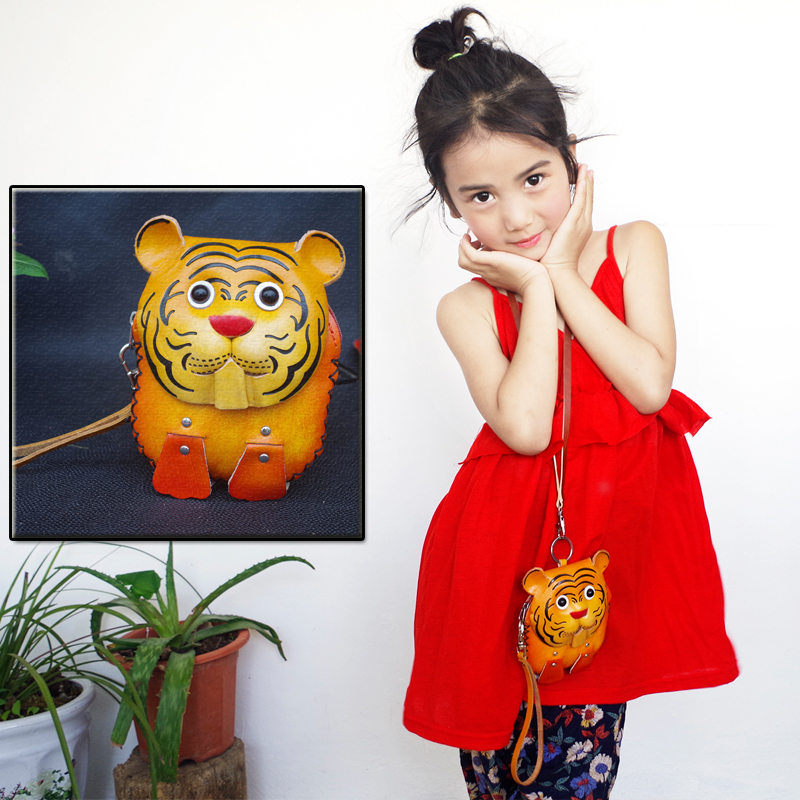 Children's birthday gift tiger leather hand-held coin purse first layer cowhide cartoon children's small shoulder bag hanging bag female