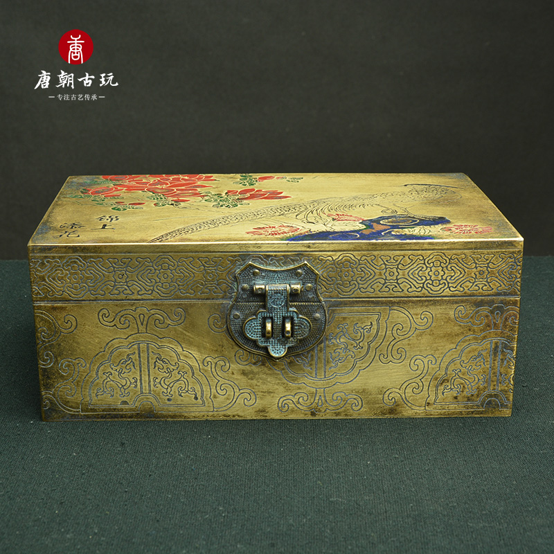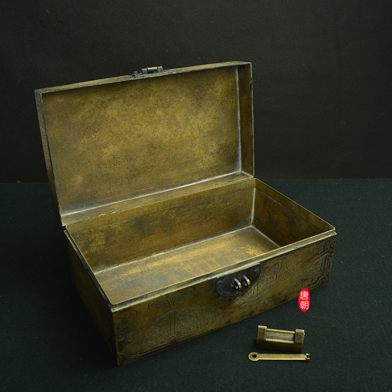 Antique antique copper box old court retro jewelry box Bachelor contains copper box carved copper box carved copper lock