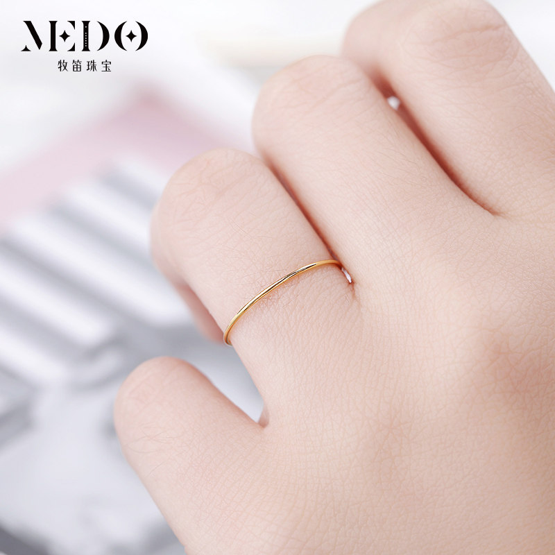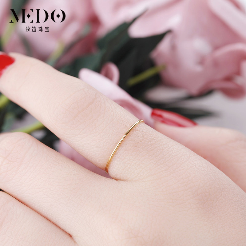 18K Gold Ring Female Aperture Thin Finger Ring Japanese and Korean Simple Index Finger Ring Finger Knuckle Ring Tail Ring Little Finger