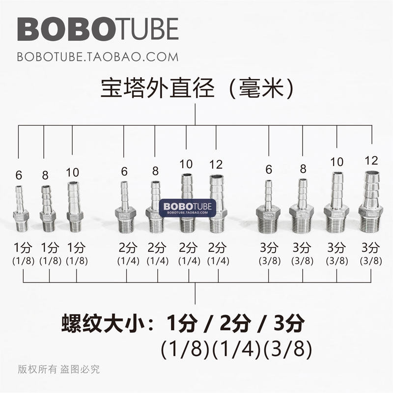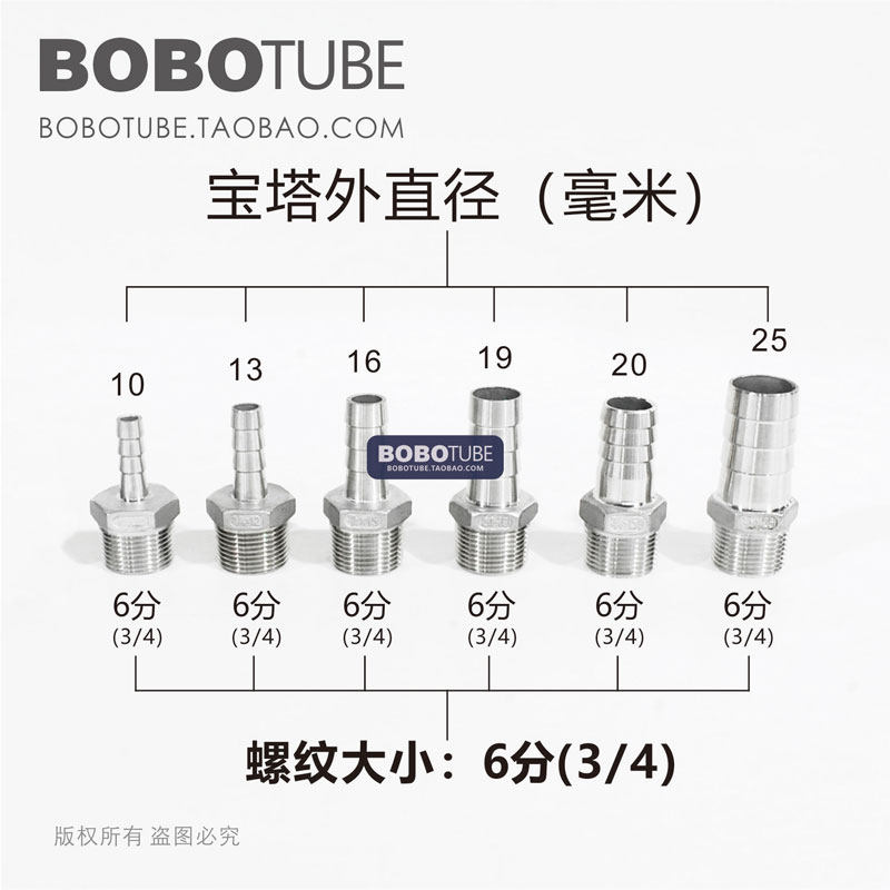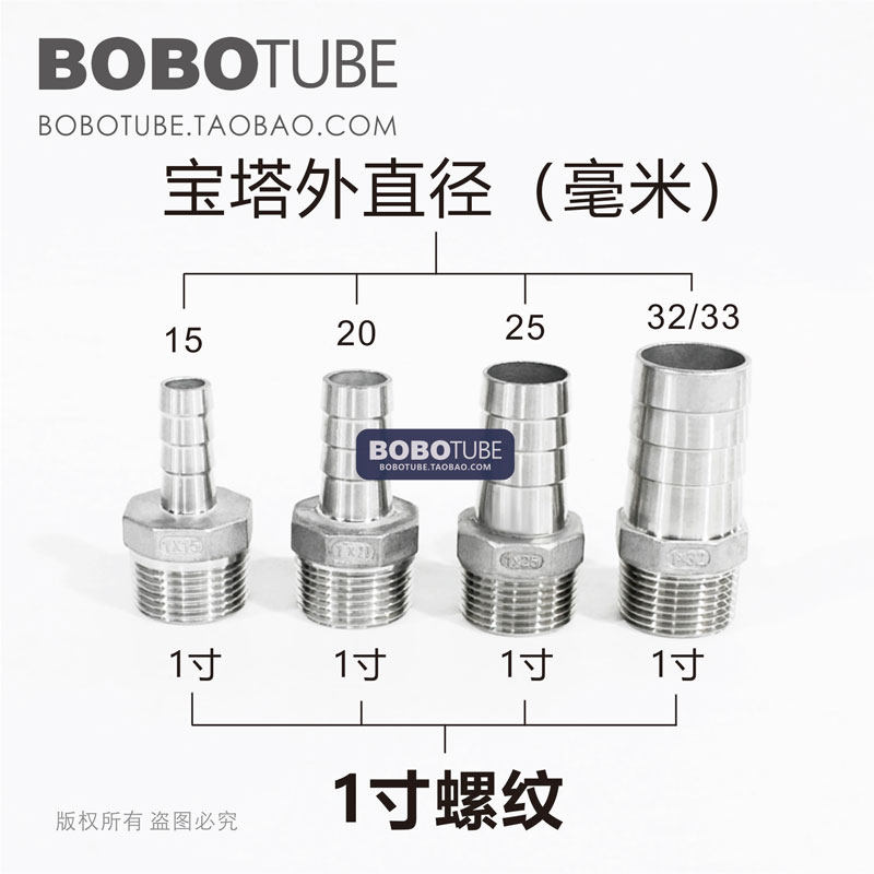 Positive 304 stainless steel leather pipe joint hexagonal pagoda outside silk tooth soft water pipe insert 1 minute 2 minutes 3 minutes 1 81 43 8