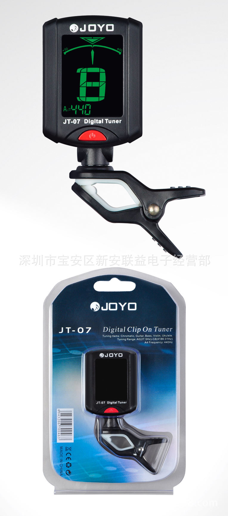 JOYO JT-07 clip-on negative display backlight tuner guitar violin electric bass tuner