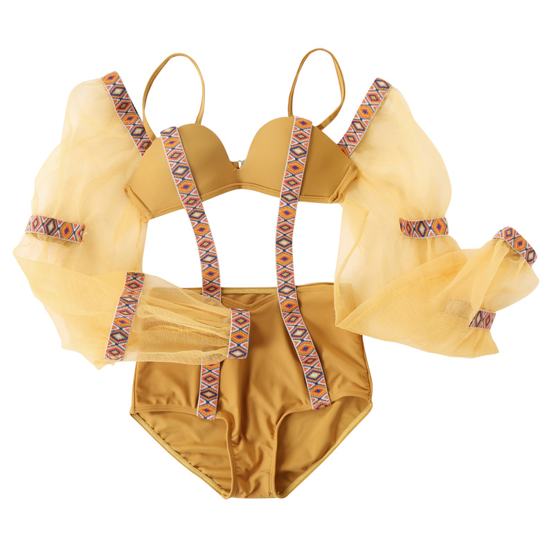 Net red with the same Thai retro turmeric colour bubble yarn small breasts to woo the hollowed-out sexy even body spa swimsuit woman