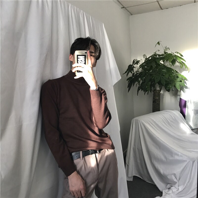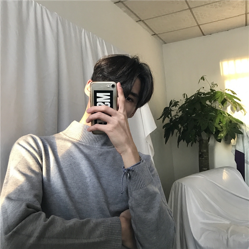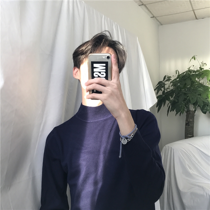Cuibuju Autumn Winter New Han Edition Refined Long-sleeved Semi-collar Sweater Men Pure Color