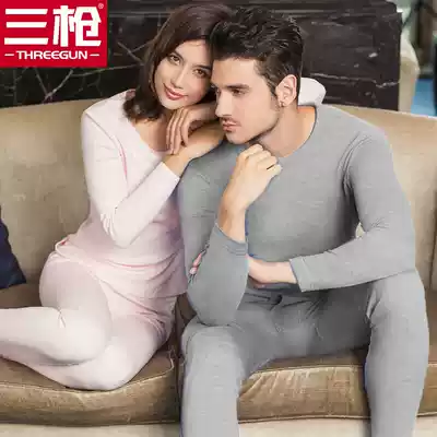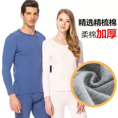 Three-gun underwear comfortable pure cotton medium thick round neck thick cotton extra soft cotton wool men's and women's underwear set autumn clothes sanitary pants