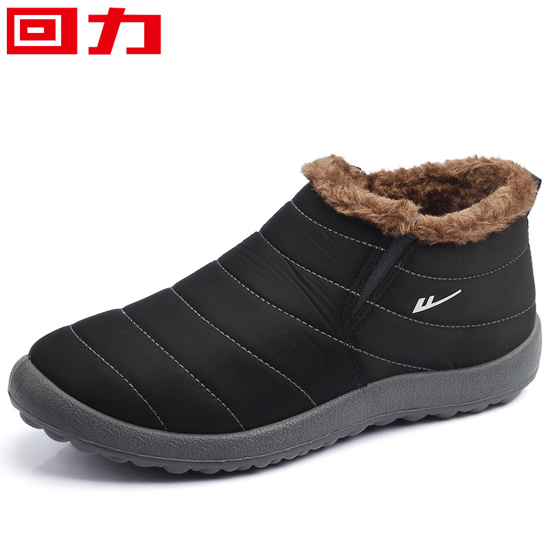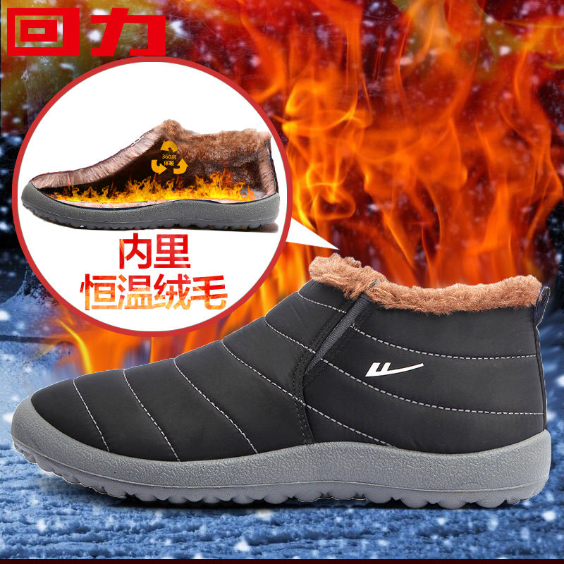 Pull back men's shoes winter plus velvet casual shoes mid-high top warm cotton shoes men's short cotton boots couple snow boots men