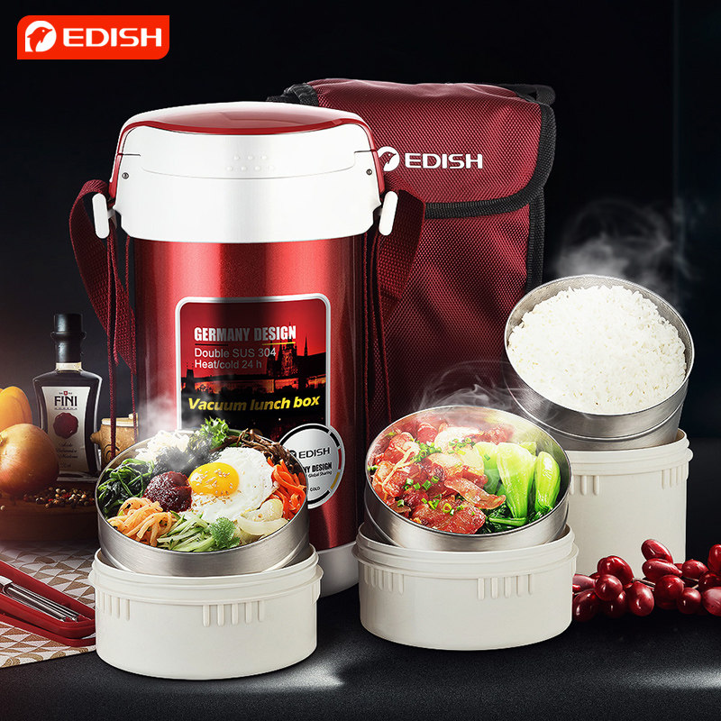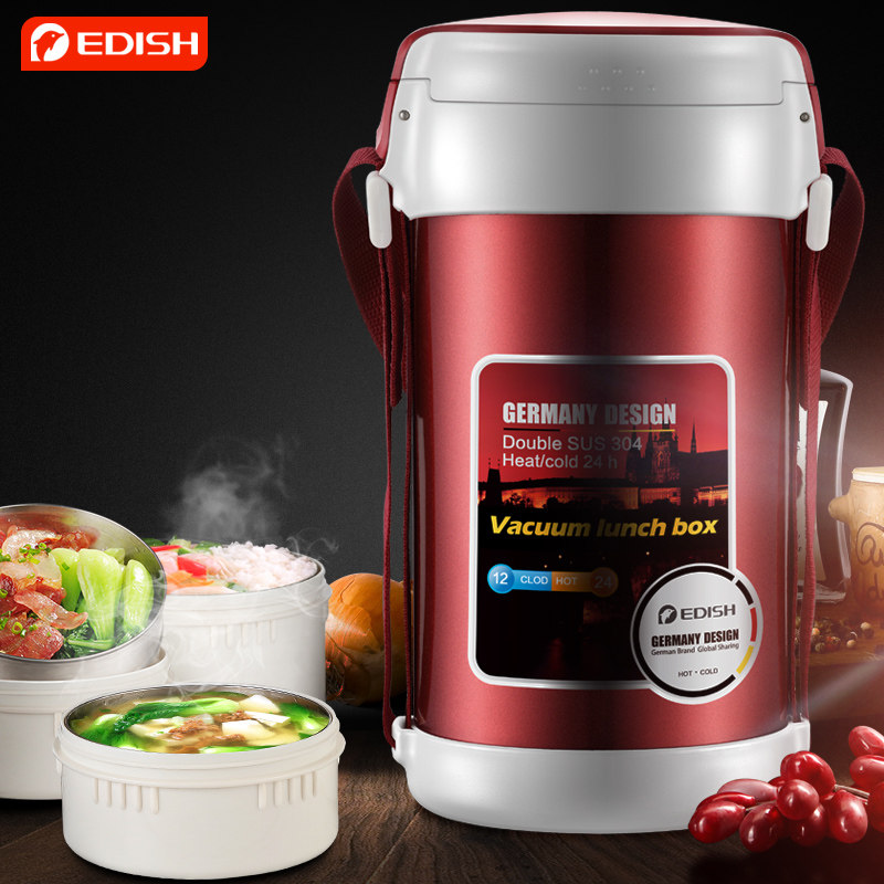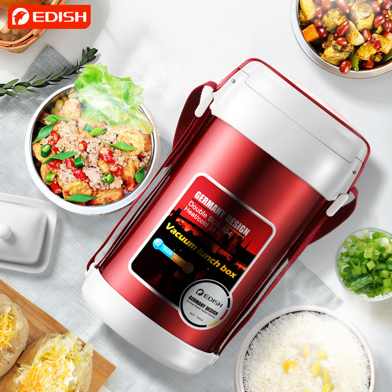 Germany one drop of water insulation lunch box 3-layer 304 stainless steel ultra-long insulation adult insulation bucket student lunch box