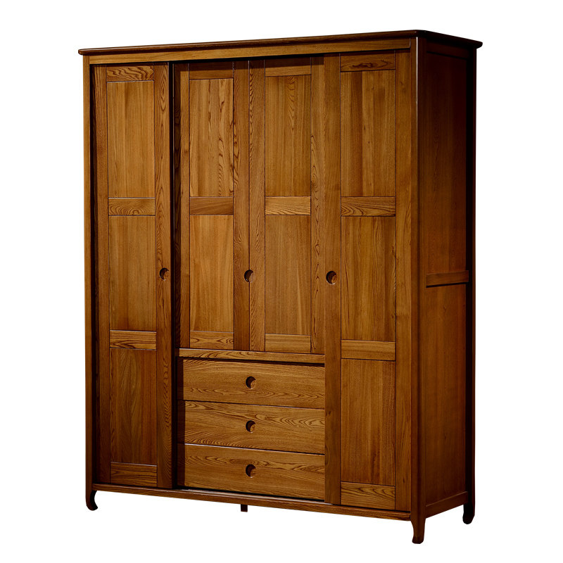 Nordic all solid wood simple four-door wardrobe Gold silk sandalwood overall coat overall cabinet modern Chinese bedroom furniture