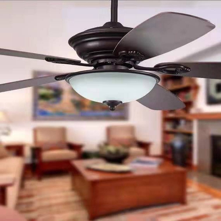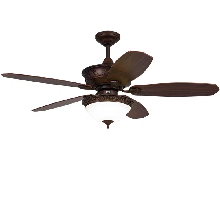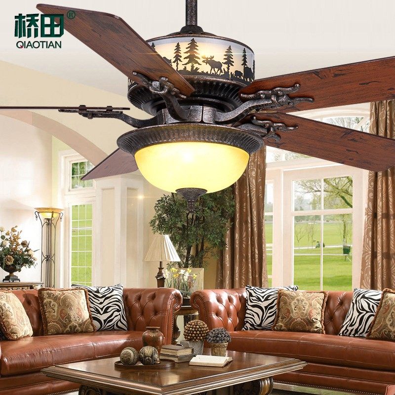 Qiaotian American style antique country pastoral LED ceiling fan light Dining room Living room bedroom carved art big fan light