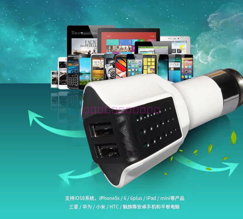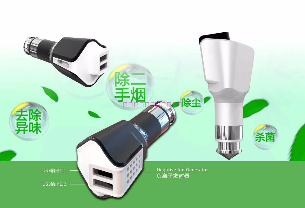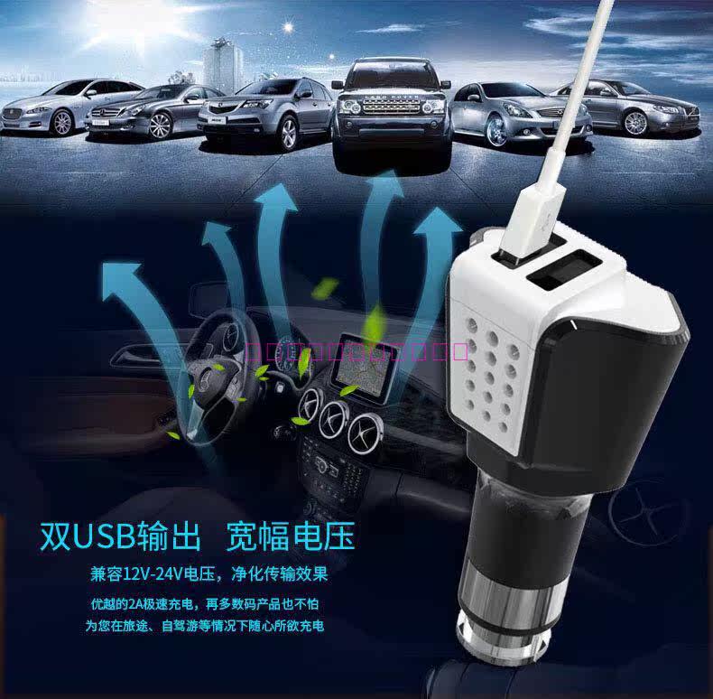 Car charger, one drag two double USB multifunctional car charging air purifier safety hammer customization