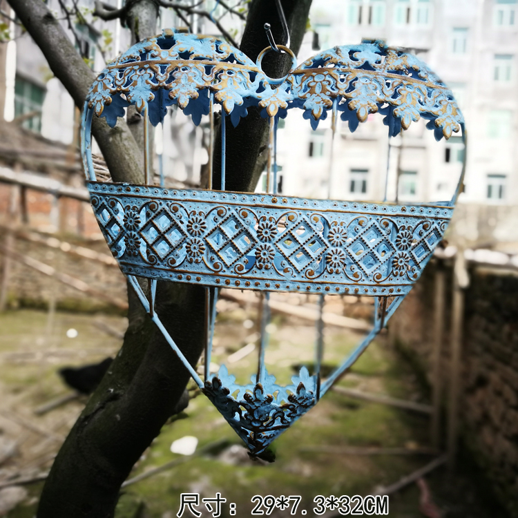 French country Romantic heart candle holder pendant Wedding photography props Lover gift bar decoration