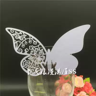 Red wine wine name card birthday party Pearl paper card hollow butterfly card wedding table card 50