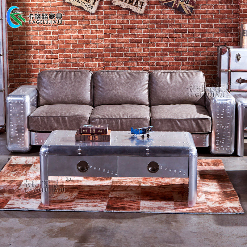 Industrial style retro sofa personality reception creative combination office aluminum leather metal bar ktv leather sofa