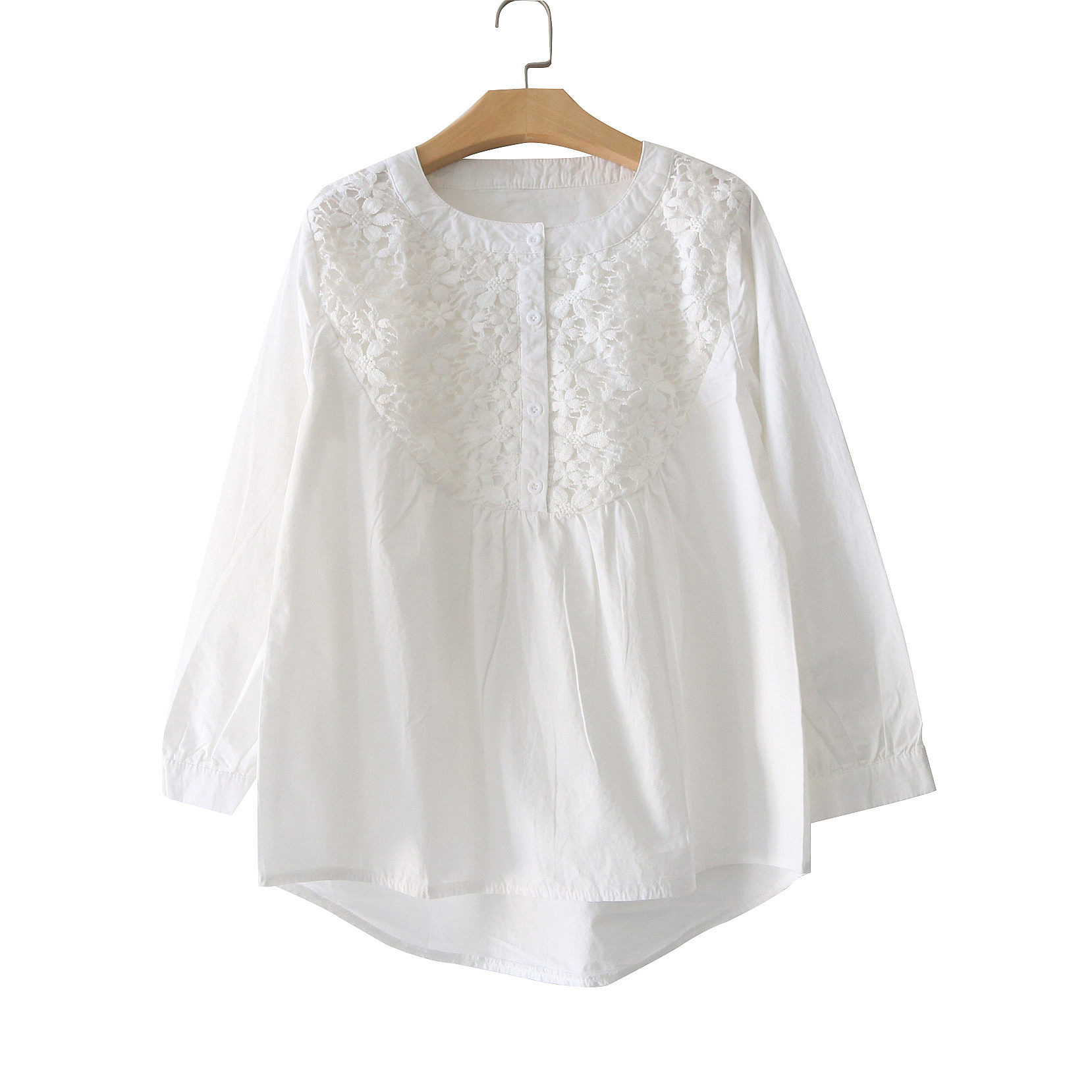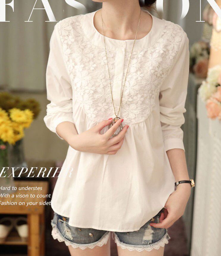 Full cotton pregnant woman Spring dress Han version Fashion Spring Summer Lace Long Sleeve Pregnant Woman Shirt Beat bottom jacket A short T-shirt