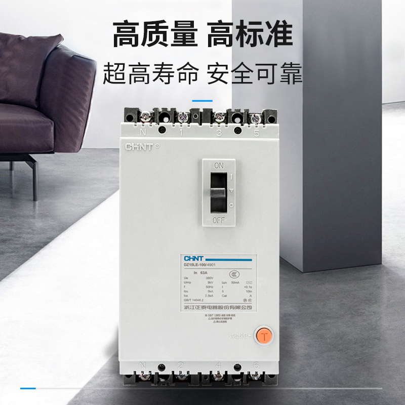 Zhengtai three-phase four-wire leakage circuit breaker DZ15LE-100 4901 molded case leakage protection circuit breaker 100a