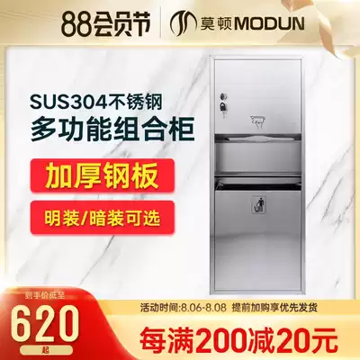 Morton two-in-one stainless steel combination cabinet brushed anti-fingerprint concealed public powder room with trash can toilet paper box