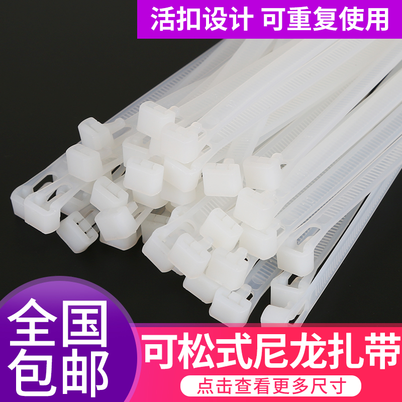 Loose-style live Ribbon 8 * 200mm Nylon Detachable Repeat Use Plastic Debatable Buckle Powerful White
