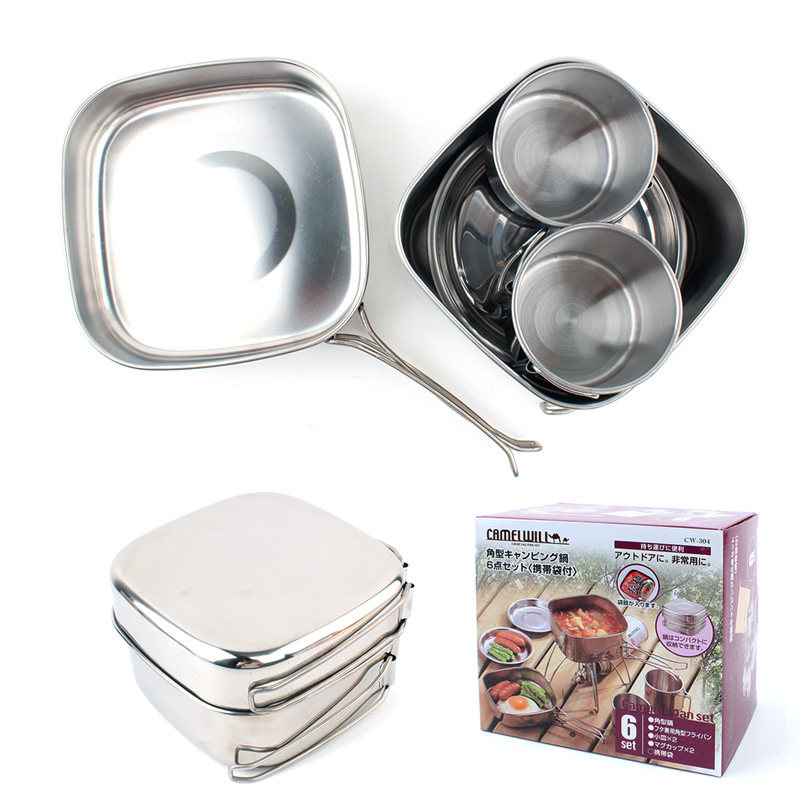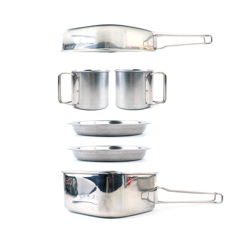 Outdoor pot set portable stainless steel cookware camping equipment picnic barbecue combined camping pot