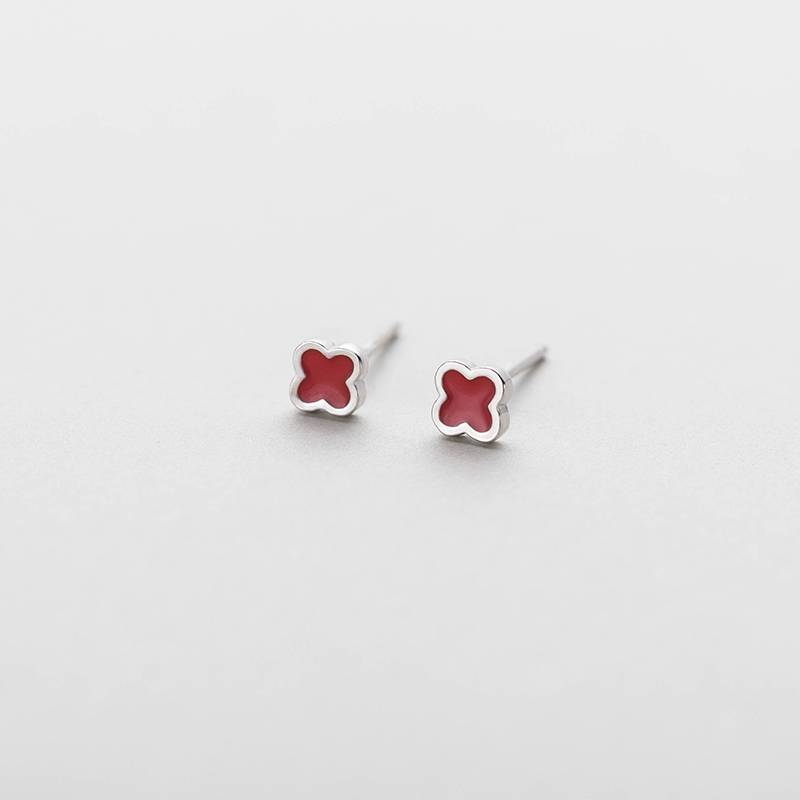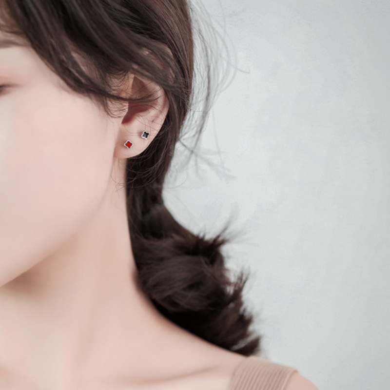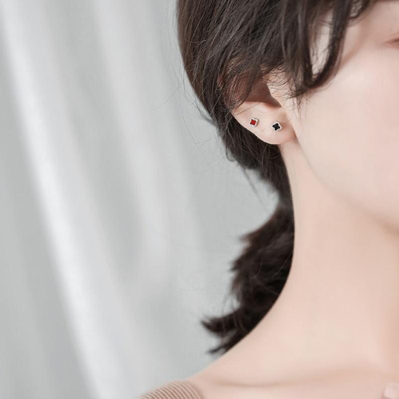 925 pure silver-mini four-leaf straw ear nail-red 925 pure silver-mini four-leafy grass ear nail-black