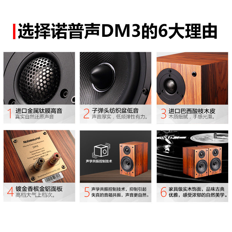 Nobsound DM3 high-fidelity solid wood hifi speaker Audiophile-grade passive 6 5-inch bookshelf audio home desktop 2 0 imported treble wooden box