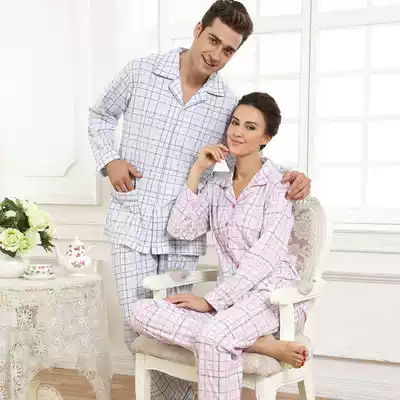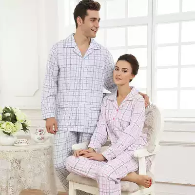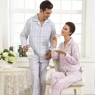 Middle-aged and elderly couple pajamas autumn and winter thickened pure cotton long-sleeved couple clothes suit men's and women's home clothes cotton