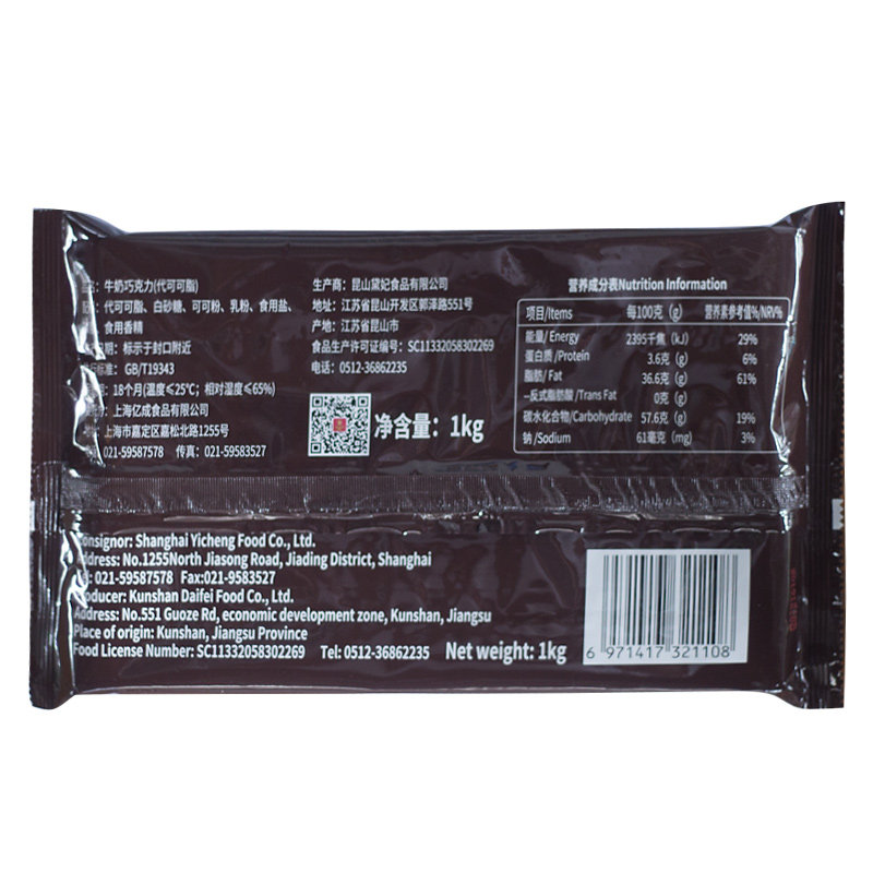 Concubine Dai's Cocoa Butter Chocolate Bricks 1kg Concubine Dai's Black Bittersweet Strawberry Fragrant White Milk Flavored Chocolate