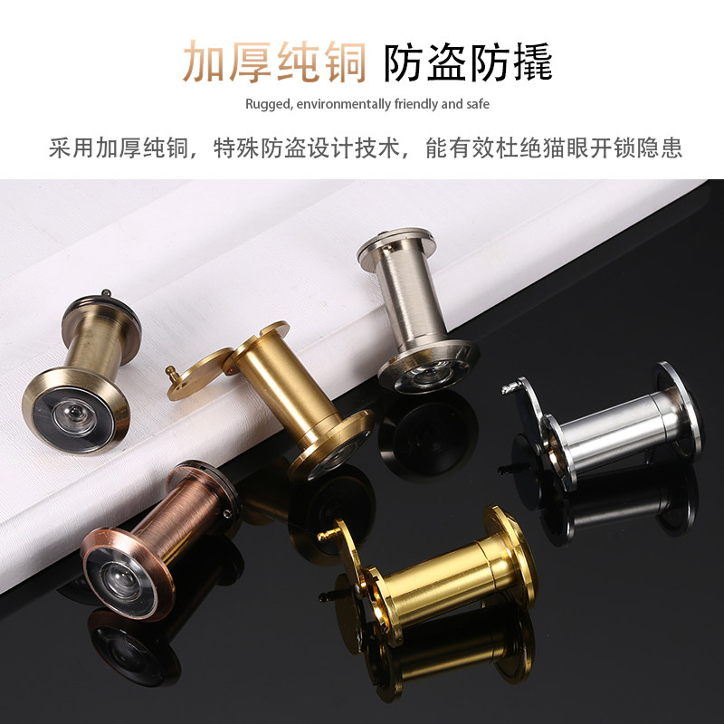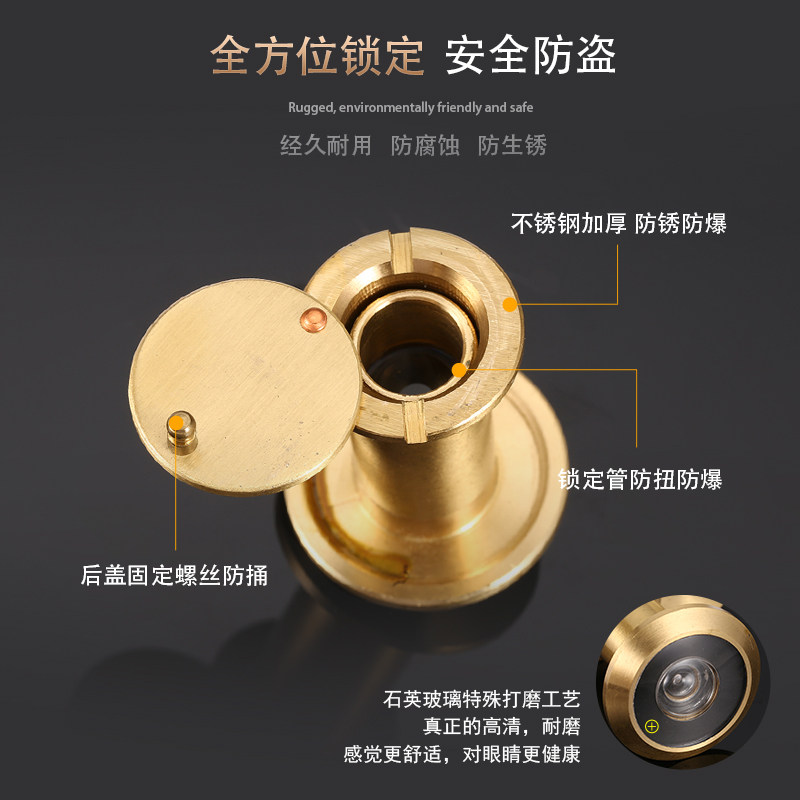 All Copper Pure Copper Cat Eye HD Optical 220 Degree Wide Angle Door Mirror Anti-theft Door Cat Eye Anti-prying Glass Lens with Lid