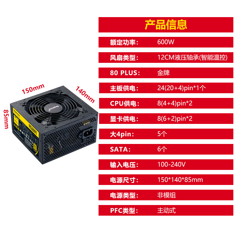 GP700G Black gold fixed 600W GP700G black gold full module rated 600W