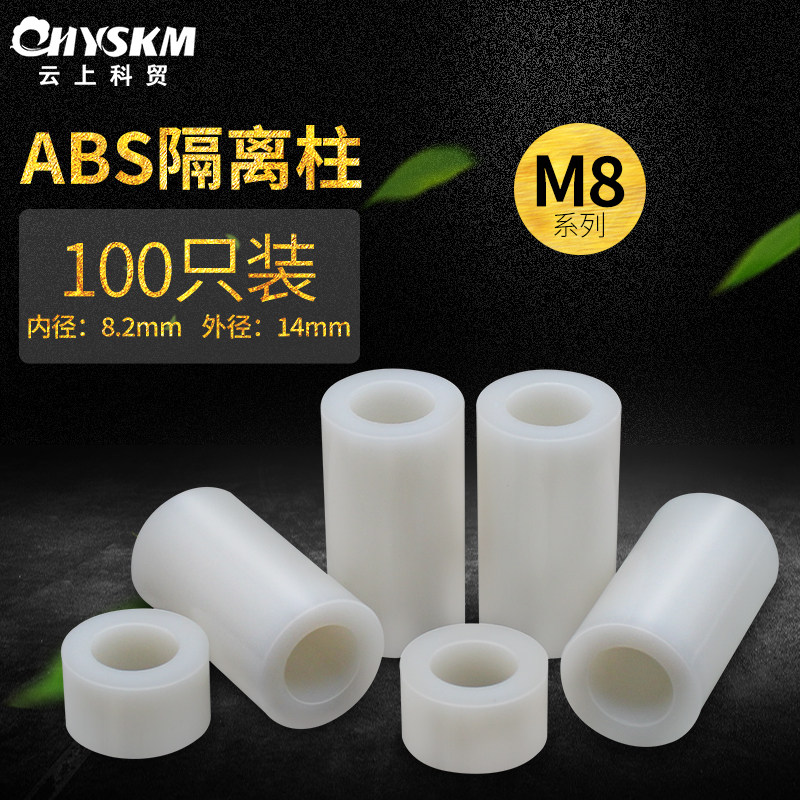 M8 insulation pad high column PC board isolation column round screw washer ABS nylon column hollow straight-through support stud