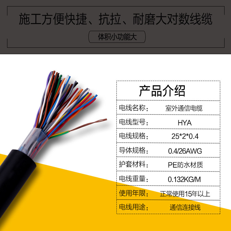 HYA100 pair large logarithmic voice telephone cable 200 pair 600 pair 400 pair 50 pair 25 pair communication cable