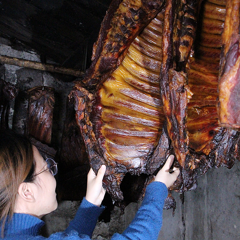 The smoke of the Sichuan smoked cured meat