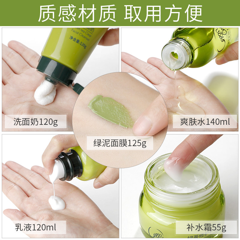 Green tea 2 pieces (water milk) green tea 3 pieces (wash water milk) gift box 4 pieces (shampoo creamy) gift box 5 pieces of kit (wash water cream mask)