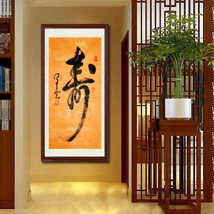Master Xingyun calligraphy longevity hand-painted three-foot vertical running script dragon pattern rice paper handwritten word old man birthday hanging calligraphy and painting