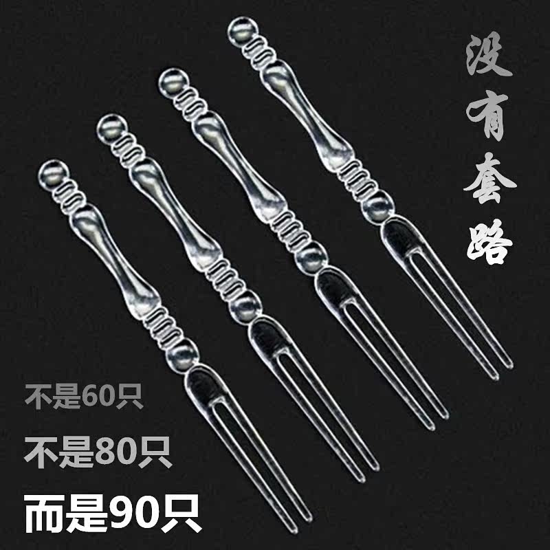 Transparent Fruit Sign Bamboo Festival Fork KTV Fruit Fork Plastic Fruit Sign Bar Disposable Fruit Pan Fork 10 Bag