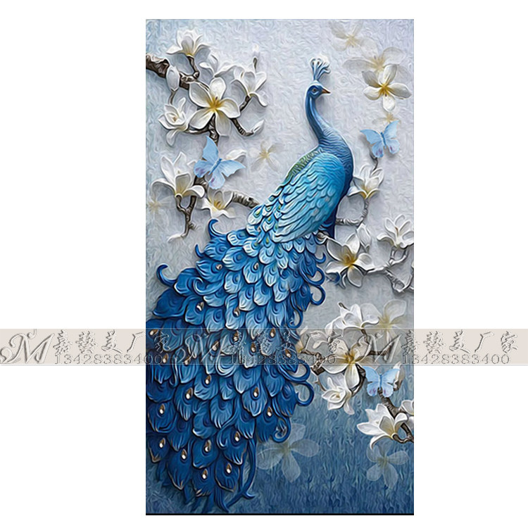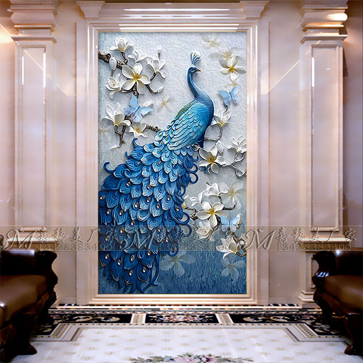 European-style art glass partition screen Living room shoe cabinet entrance background wall modern hanging painting peacock