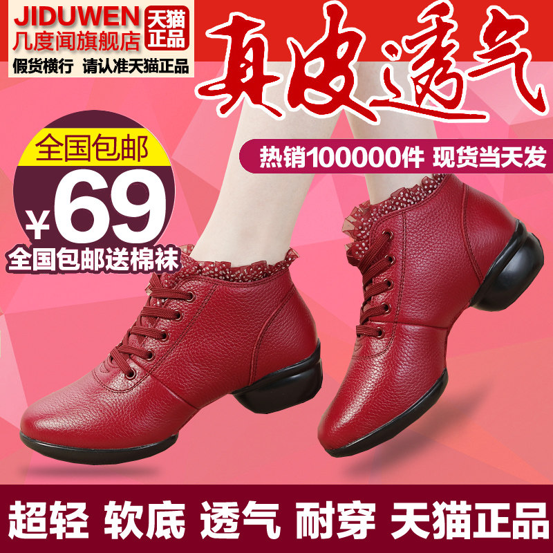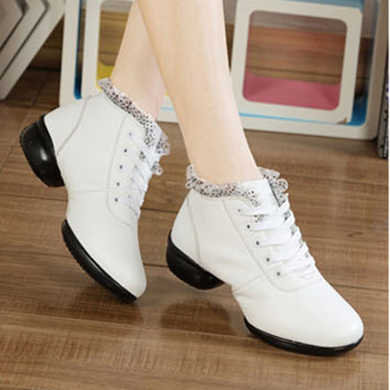 Fall New Square Dance Shoes Fitness Modern Dance Shoes Women High Cylinder Jazz Dance Shoes Water Soldiers Genuine Leather Dance Shoes