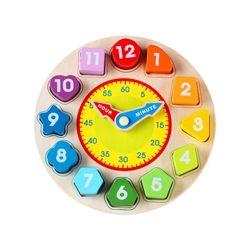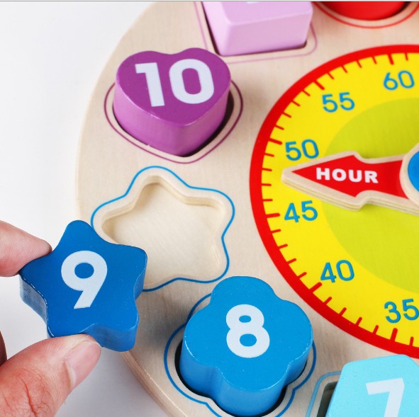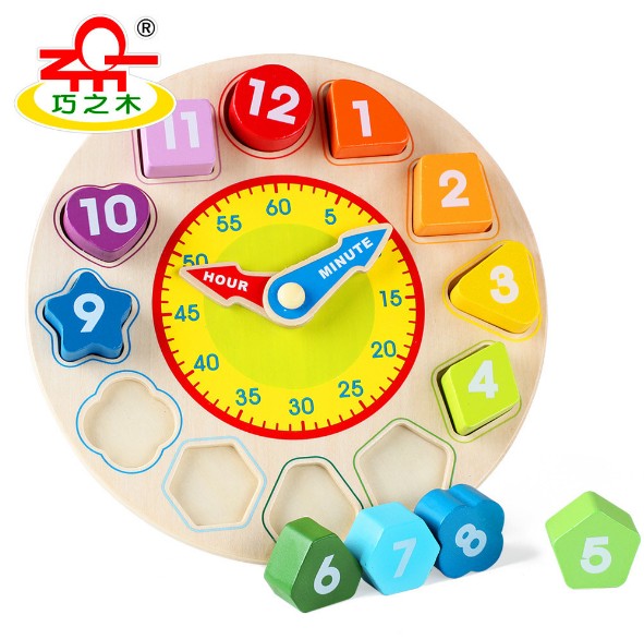 Wooden digital clock shaped block assembled 1 - 3 year old baby toy Mon's early teaching children to recognize time