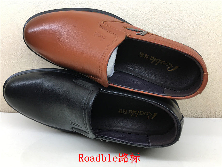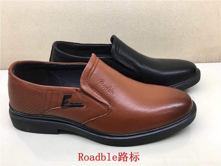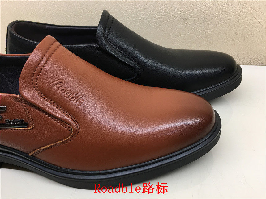 Road sign fashion business casual autumn comfortable soft thick bottom non-slip wear-resistant round head set foot men's shoes single shoes leather shoes